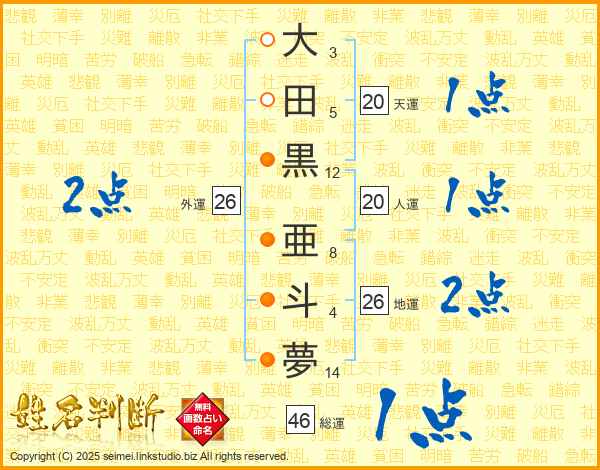大田黒亜斗夢さんの総運は46画の1点!