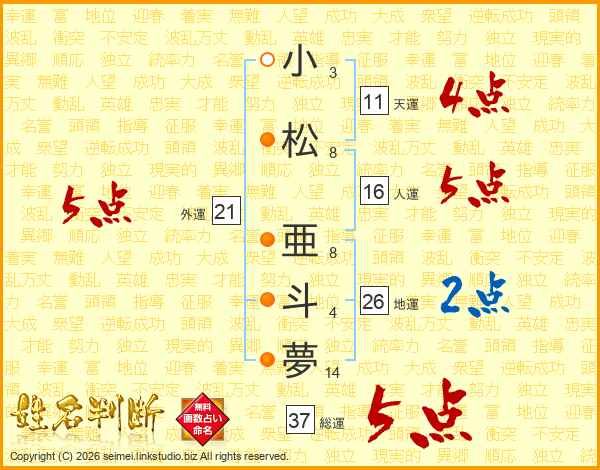 小松亜斗夢さんの総運は37画の5点!