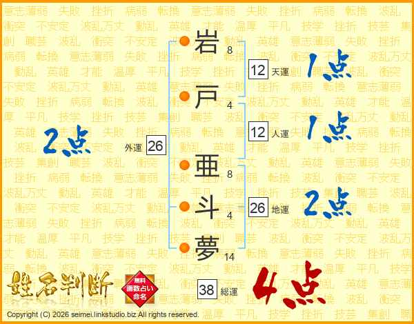 岩戸亜斗夢さんの総運は38画の4点!