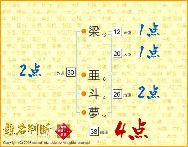 梁亜斗夢さんの総運は38画の4点!