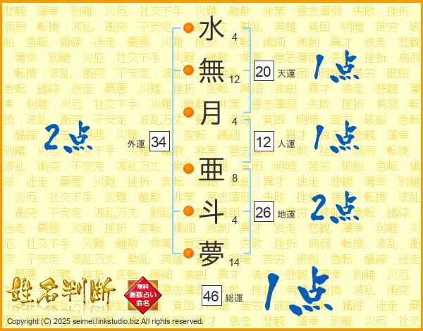 水無月亜斗夢さんの外運は34画の2点!