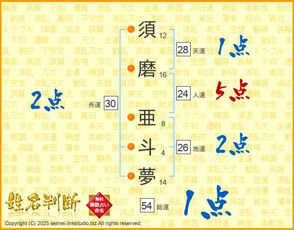 須(12画)磨(16画) 亜(8画)斗(4画)夢(14画)