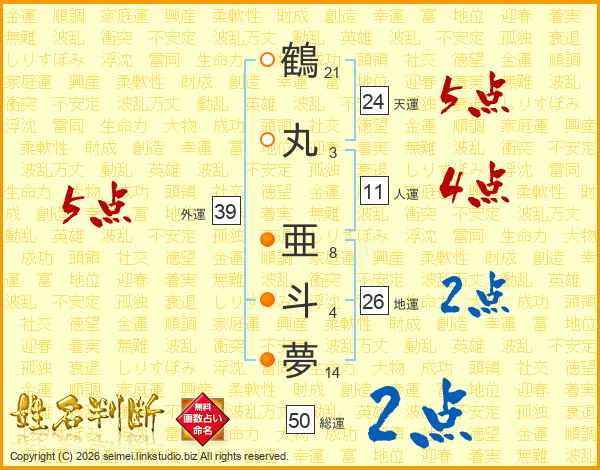鶴丸亜斗夢さんの外運は39画の5点!