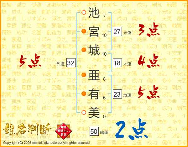 池宮城亜有美さんの外運は32画の5点!