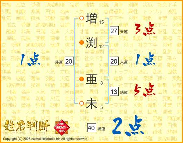 増(15画)渕(12画) 亜(8画)未(5画)