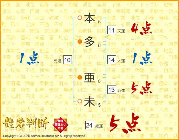 本多亜未さんの総運は24画の5点!