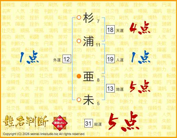 杉浦亜未さんの総運は31画の5点!