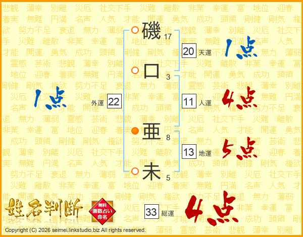 磯(17画)口(3画) 亜(8画)未(5画)