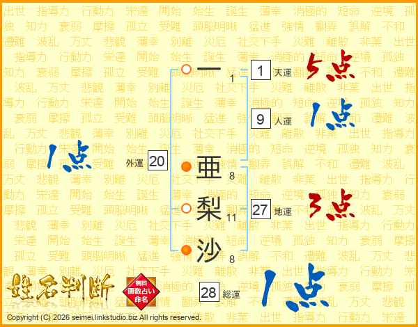 一亜梨沙さんの総運は28画の1点!