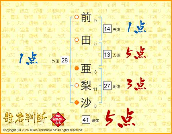 前田亜梨沙さんの総運は41画の5点!