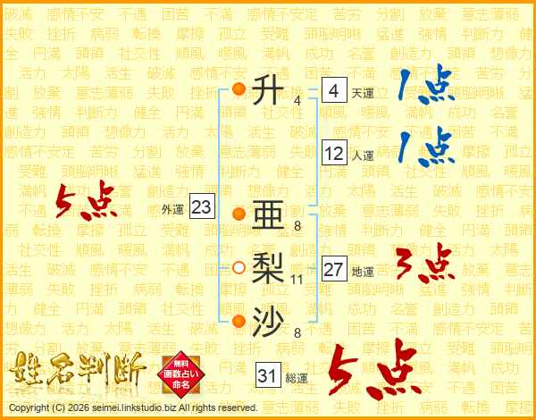 升亜梨沙さんの総運は31画の5点!
