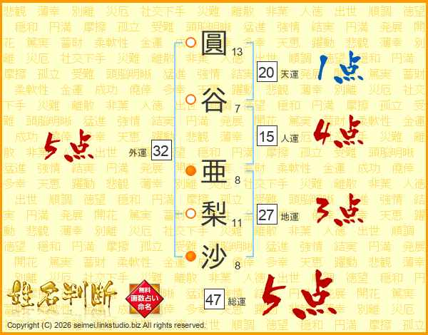 圓谷亜梨沙さんの総運は47画の5点!