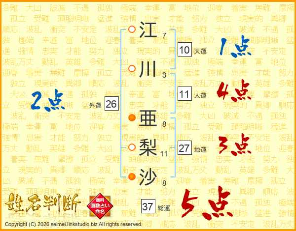 江川亜梨沙さんの総運は37画の5点!