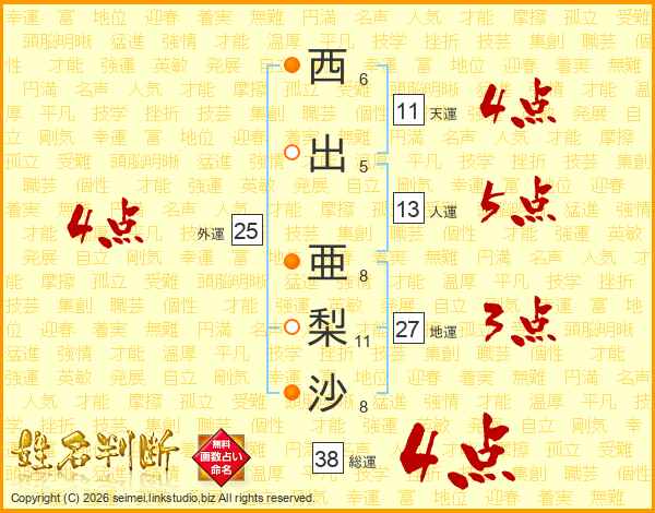 西出亜梨沙さんの総運は38画の4点!
