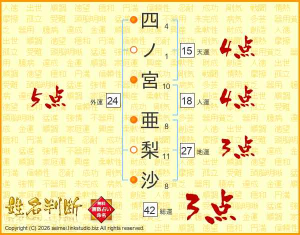 四ノ宮亜梨沙さんの総運は42画の3点!