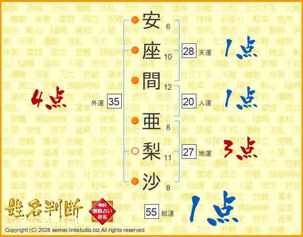 安座間亜梨沙さんの外運は35画の4点!