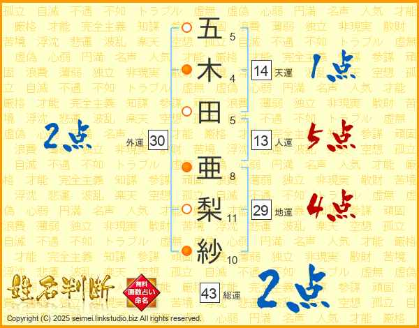 五木田亜梨紗さんの天運は14画の1点!