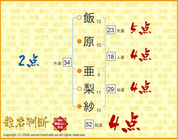 飯原亜梨紗さんの総運は52画の4点!