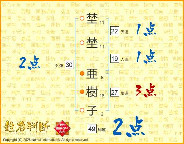 埜埜亜樹子さんの総運は49画の2点!