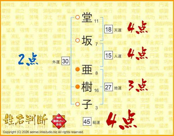 堂坂亜樹子さんの総運は45画の4点!