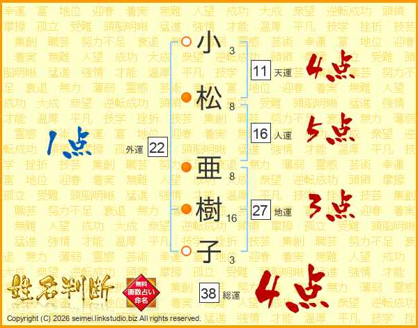 小(3画)松(8画) 亜(8画)樹(16画)子(3画)