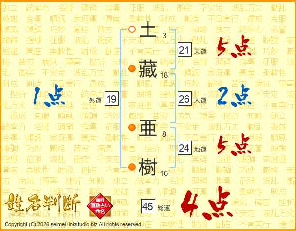 土藏亜樹さんの総運は45画の4点!
