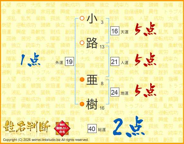 小路亜樹さんの総運は40画の2点!
