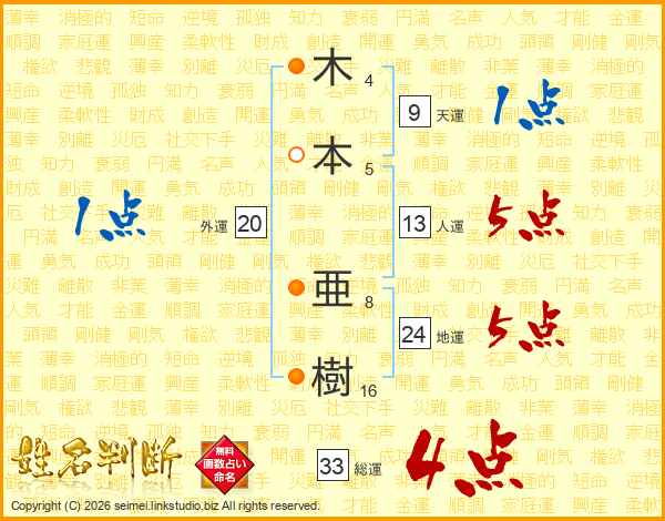 木本亜樹さんの総運は33画の4点!