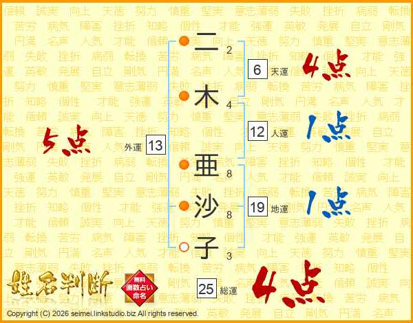二木亜沙子さんの外運は13画の5点!