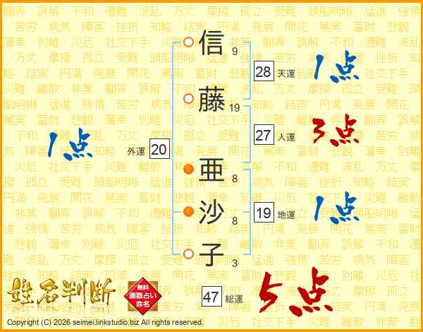 信藤亜沙子さんの総運は47画の5点!
