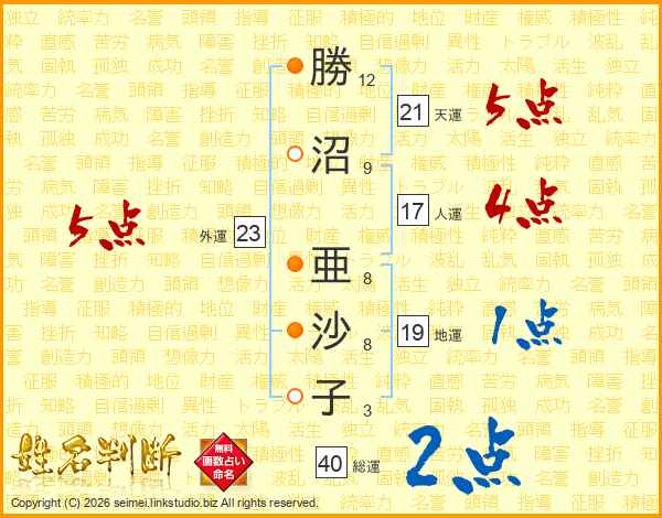 勝沼亜沙子さんの総運は40画の2点!
