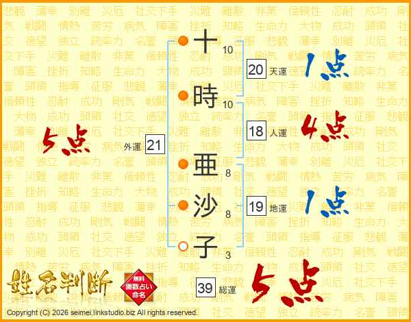 十時亜沙子さんの総運は39画の5点!