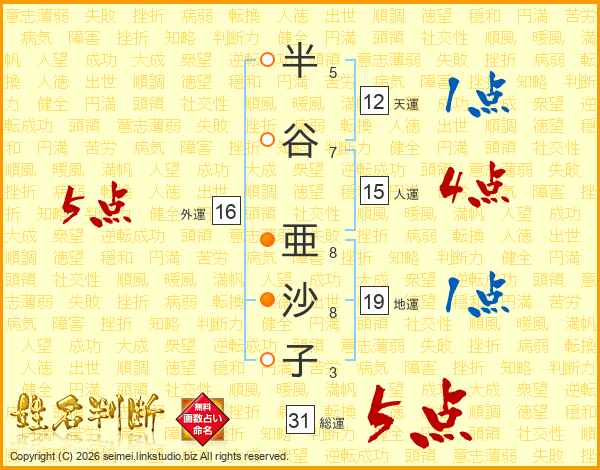 半谷亜沙子さんの総運は31画の5点!