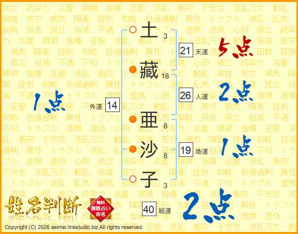 土藏亜沙子さんの天運は21画の5点!