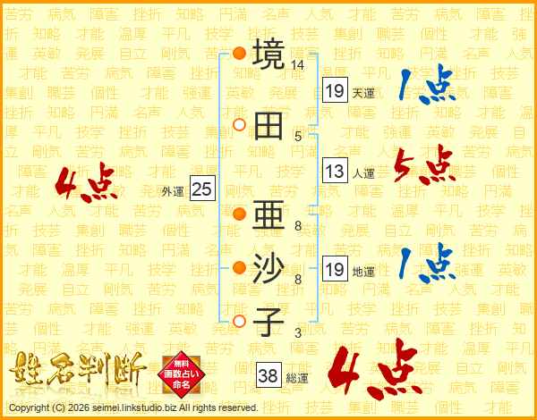 境田亜沙子さんの総運は38画の4点!