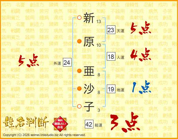 新(13画)原(10画) 亜(8画)沙(8画)子(3画)