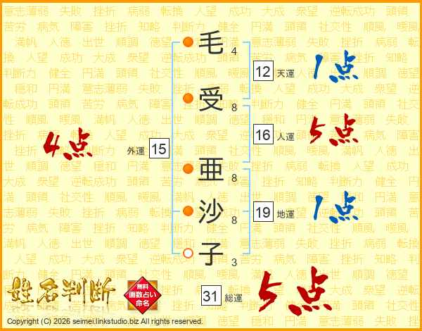 毛受亜沙子さんの総運は31画の5点!