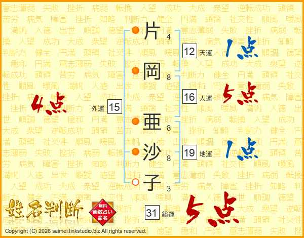 片岡亜沙子さんの総運は31画の5点!