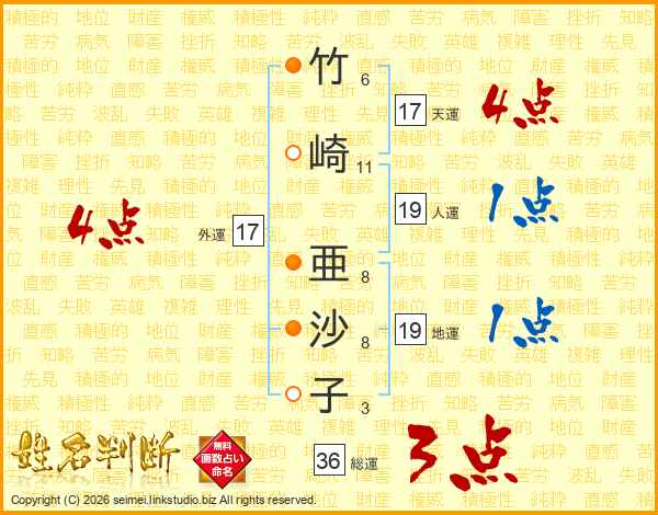 竹崎亜沙子さんの外運は17画の4点!