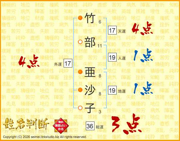 竹(6画)部(11画) 亜(8画)沙(8画)子(3画)