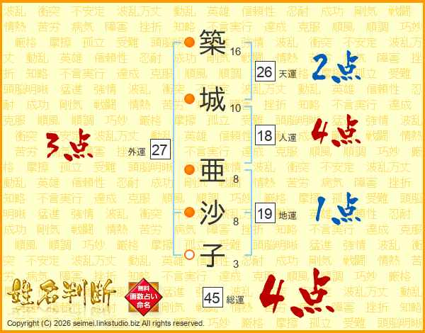 築城亜沙子さんの総運は45画の4点!
