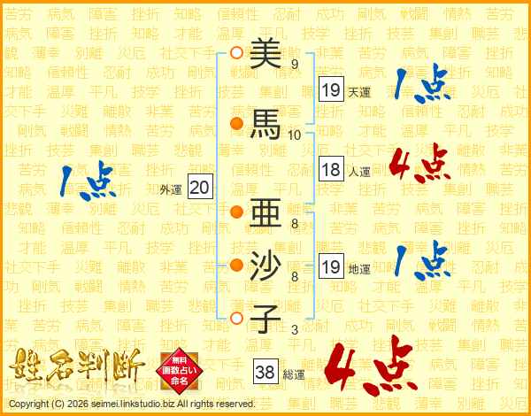 美馬亜沙子さんの総運は38画の4点!