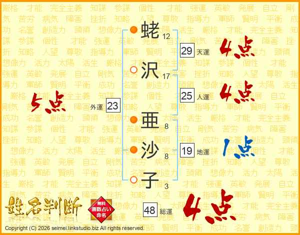 蛯沢亜沙子さんの天運は29画の4点!