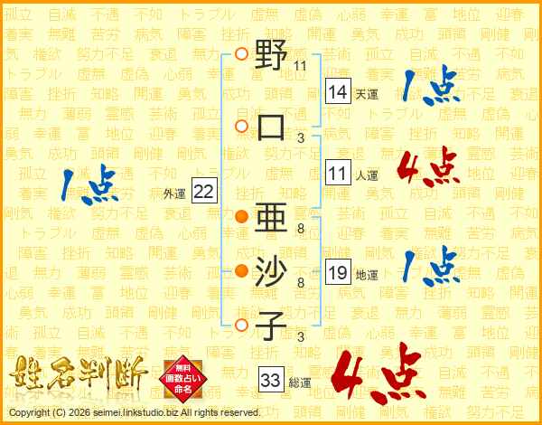 野口亜沙子さんの総運は33画の4点