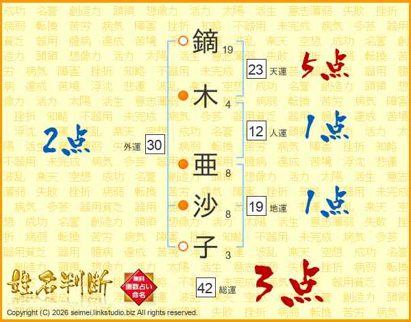 鏑木亜沙子さんの天運は23画の5点!