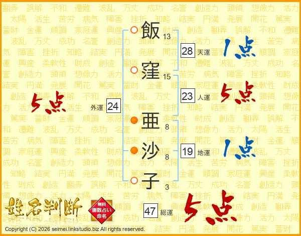 飯窪亜沙子さんの総運は47画の5点!