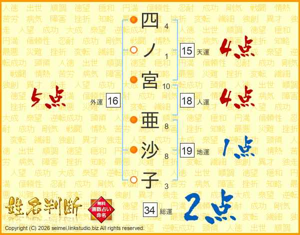 四ノ宮亜沙子さんの総運は34画の2点!