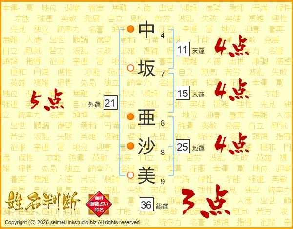 中坂亜沙美さんの天運は11画の4点!