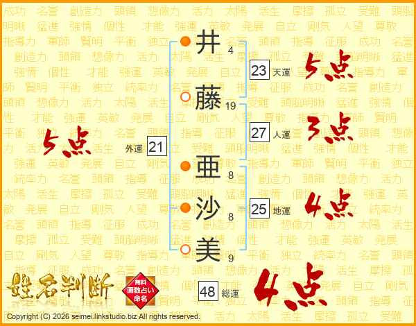 井藤亜沙美さんの地運は25画の4点!