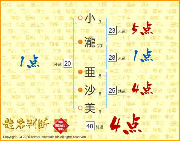 小瀧亜沙美さんの総運は48画の4点!
